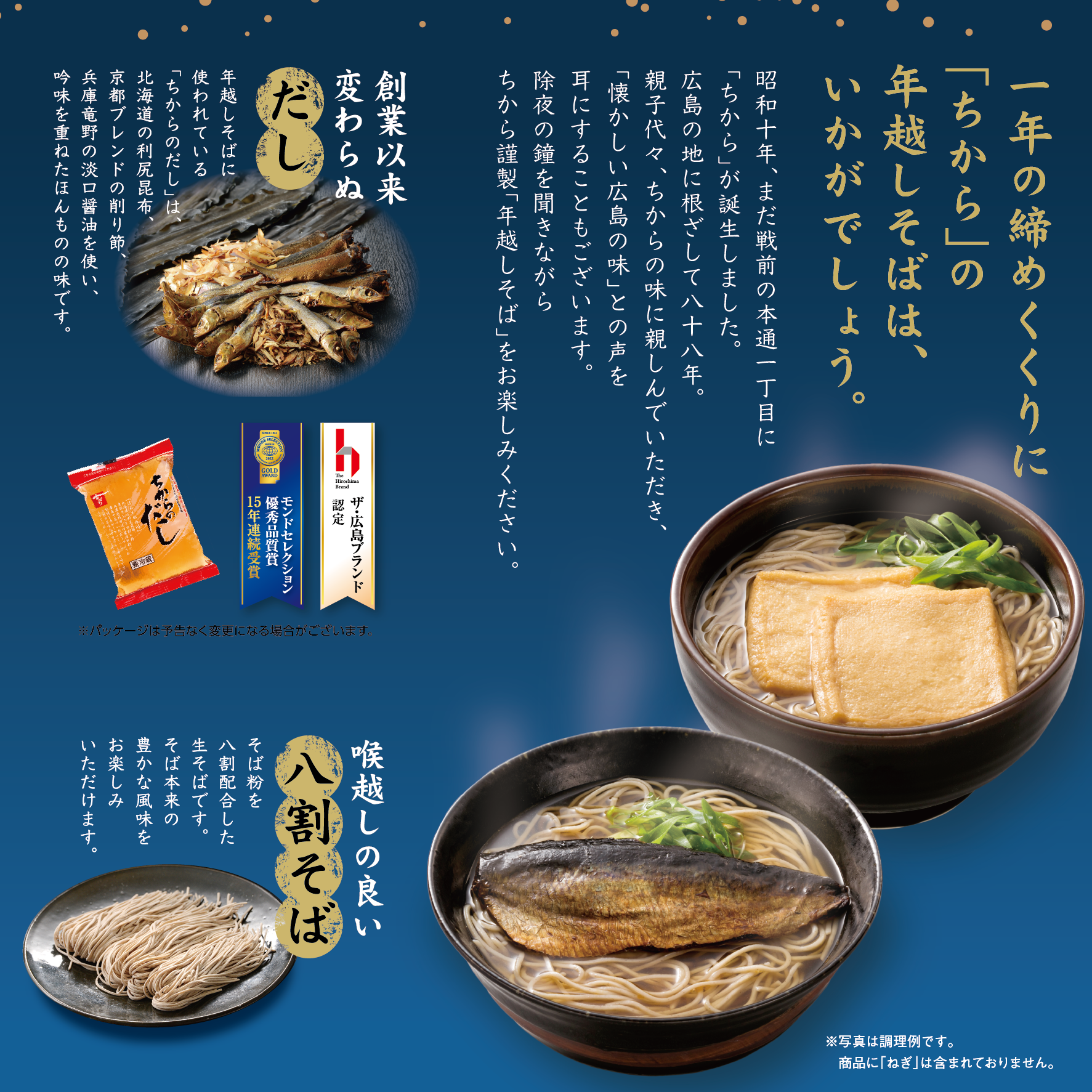 毎年恒例、広島の名店の味「ちから」の年越しそばの通信販売を開始します。